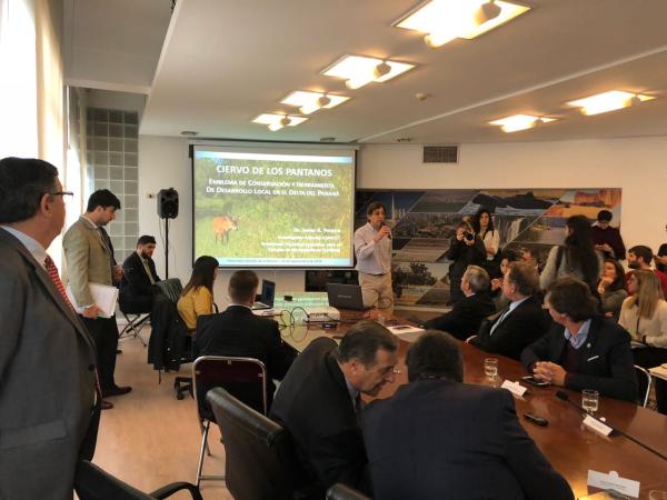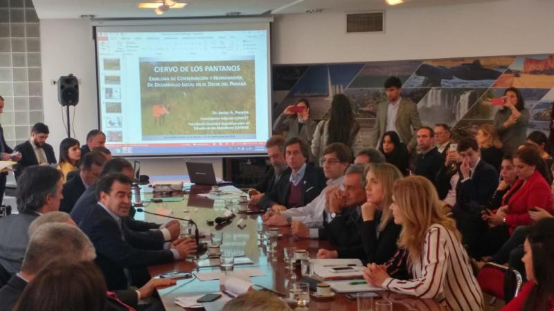 Aves Argentinas participó de la reunión conjunta de Senadores de las Comisiones de Asuntos Administrativos y Municipales, de Ambiente y Desarrollo Sustentable y Presupuesto y Hacienda, donde se trató el Proyecto de Ley sobre la transferencia de terrenos de propiedad de la Pcia. de Buenos Aires al Estado Nacional para la creación del Parque Nacional Ciervo de los Pantanos, más conocida como Reserva Natural Otamendi, en dicha provincia.