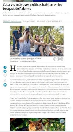"Todo, con fotos y fechas, lo tenemos apuntado", jura Diego Carús, que tiene 28 años y por la tarde, cuando deja su puesto de analista de sistemas en una empresa de comunicaciones, se instala con binoculares en algún rincón de las 370 hectáreas de los bosques de Palermo. Allí registra especies y trata de entender sus comportamientos. Empezó a hacerlo en 2013, luego se sumó al Club de Observadores de Aves de Palermo, hizo el curso de intérprete naturalista en Aves Argentinas y lideró un censo de especies que viven, sobrevuelan o pasan algún tiempo en el Parque 3 de Febrero, como se llaman formalmente los bosques.