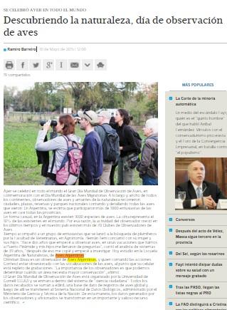 Ayer se celebró en todo el mundo el Gran Día Mundial de Observación de Aves, en conmemoración con el Día Mundial de las Aves Migratorias. A lo largo y ancho de todos los continentes, observadores de aves y amantes de la naturaleza recorrieron ciudades, plazas, reservas y parques nacionales contando y detallando todas las aves que vieron. En Argentina, se estima que participaron más de 1000 entusiastas de las aves en casi todas las provincias.