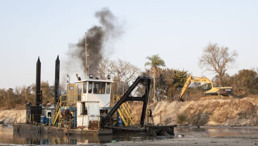 Luego de recorrer la zona en kayak, Paulino Moreno, vecino de la zona y miembro de un grupo local vinculado con los deportes náuticos, describe: “La draga estacionaria, montada sobre una barcaza de grandes dimensiones, realiza el trabajo de succión de material del fondo arenoso, para ser arrojado a través de cañerías hasta unos 50 metros sobre las orillas. En esta acción son necesarias dos retroexcavadoras sobre orugas que trabajan en ambas márgenes construyendo un camino de sirga de unos veinte metros de ancho, y otro par más doscientos metros atrás que “acomoda” y “nivela” el material arrojado sobre el monte. Para facilitar el paso por los distintos desniveles y pequeños canales de desagües de lagunas o vertientes, la contratista improvisa “puentes” con los restos de los troncos y ramas de la deforestación sobre las que se cruzan las orugas, tapando el normal desagüe de estos espejos de agua. En la actual bajante histórica de los ríos, el calado del Riachuelo no supera el medio metro. En esta situación la draga debe ser virtualmente arrastrada con cadenas sobre el cauce para profundizar hasta un metro y medio el fondo. El avance de 100 metros diarios destruye y deforesta todo a su paso arrojando los restos de vegetación a un costado formado pilas de troncos y ramas de desecho de lo que alguna vez fuera bosque nativo (...). Las maquinarias utilizadas requieren para su funcionamiento grandes cantidades de combustible y aceites, se han verificado sobre las aguas del río grandes manchas de aceite y combustibles provenientes de la obra, ya sean de mantenimiento mecánico o quizá de pérdida de sus tanques de combustible, cualquiera sea el caso es una contaminación que afecta seriamente la vida acuática en este río que a la fecha tiene muy poca agua en su curso.”