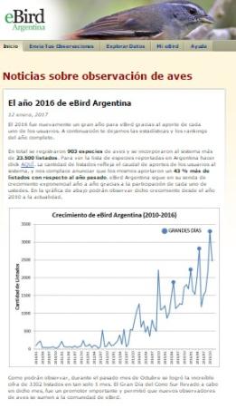 Como en eBird no solo nos interesan la cantidad de especies que uno pueda llegar a observar, sino también la cantidad y calidad de la información que cada usuario vuelca al sistema, nos sorprendimos cuando vimos que Ricardo Doumenecq Milieu se consagro top eBirder por listados del 2016, subiendo 1061 listados en todo el año, lo cual da como promedio un total de ¡3 listas por día!