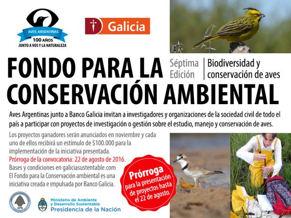 Aves Argentinas junto a Banco Galicia invitan a investigadores y organizaciones de la sociedad civil de todo el país a participar con proyectos de investigación o gestión sobre el estudio, manejo y conservación de aves silvestres.