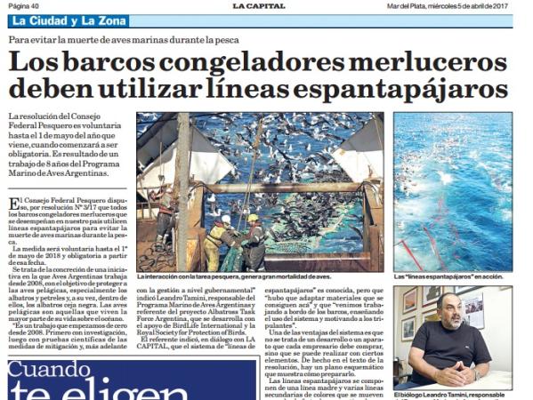 “Es un trabajo que empezamos de cero desde 2008. Primero con investigación, luego con pruebas científicas de las medidas de mitigación y, más adelante con la gestión a nivel gubernamental” indicó Leandro Tamini,responsable del Programa Marino de Aves Argentinas y referente del proyecto Albatross Task Force Argentina, que se desarrolla con el apoyo de BirdLife International y la Royal Society for Protection of Birds.