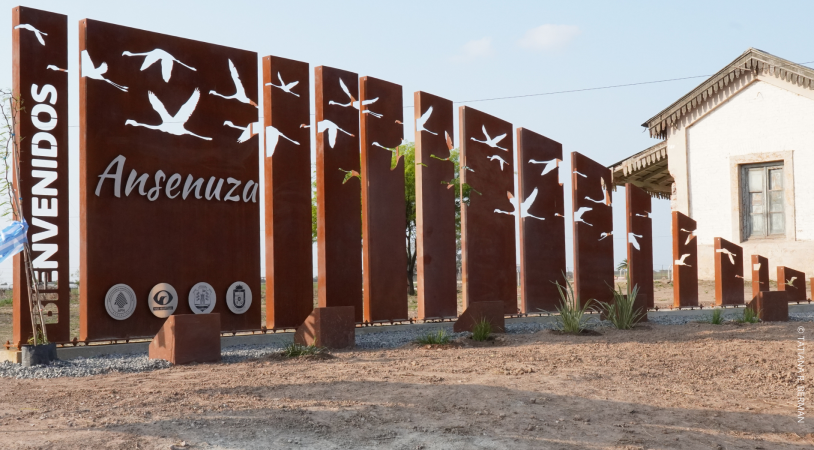 Instalamos en Ansenuza cuatro Portales de Bienvenida en las localidades de La Para, Marull, La Paquita y Morteros con el apoyo de la Fundación Wyss.