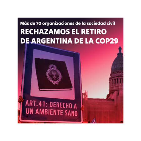 Las organizaciones abajo firmantes rechazamos de manera categórica la decisión del gobierno argentino de retirar a la delegación oficial de las negociaciones de la COP29 de Cambio Climático. La decisión adoptada por el gobierno constituye un retroceso histórico en materia de política ambiental y climática para nuestro país. La Argentina ha participado de manera activa en las negociaciones climáticas desde la adopción de la Convención Marco de las Naciones Unidas sobre Cambio Climático (CMNUCC) en 1992 y ha generado enormes contribuciones en la materia.