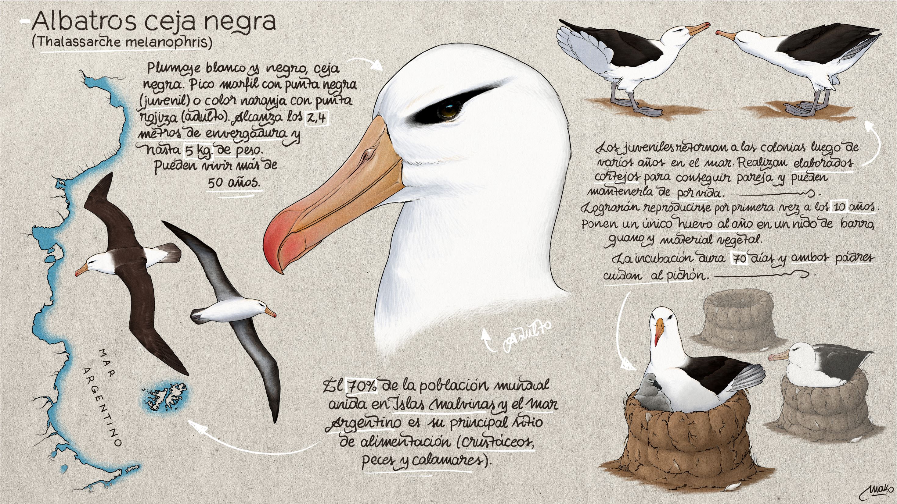 Alrededor del 75 % de los Albatros ceja negra del mundo se reproducen y viven asociados al Mar Argentino, y el 72% nidifica en Islas Malvinas.