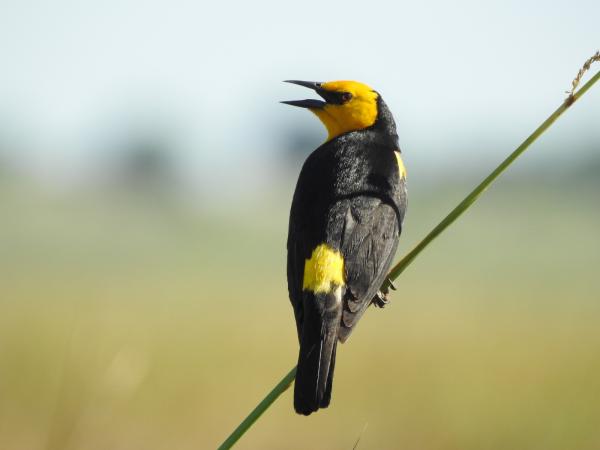 El tordo amarillo (Xanthopsar flavus) es una especie que habita los